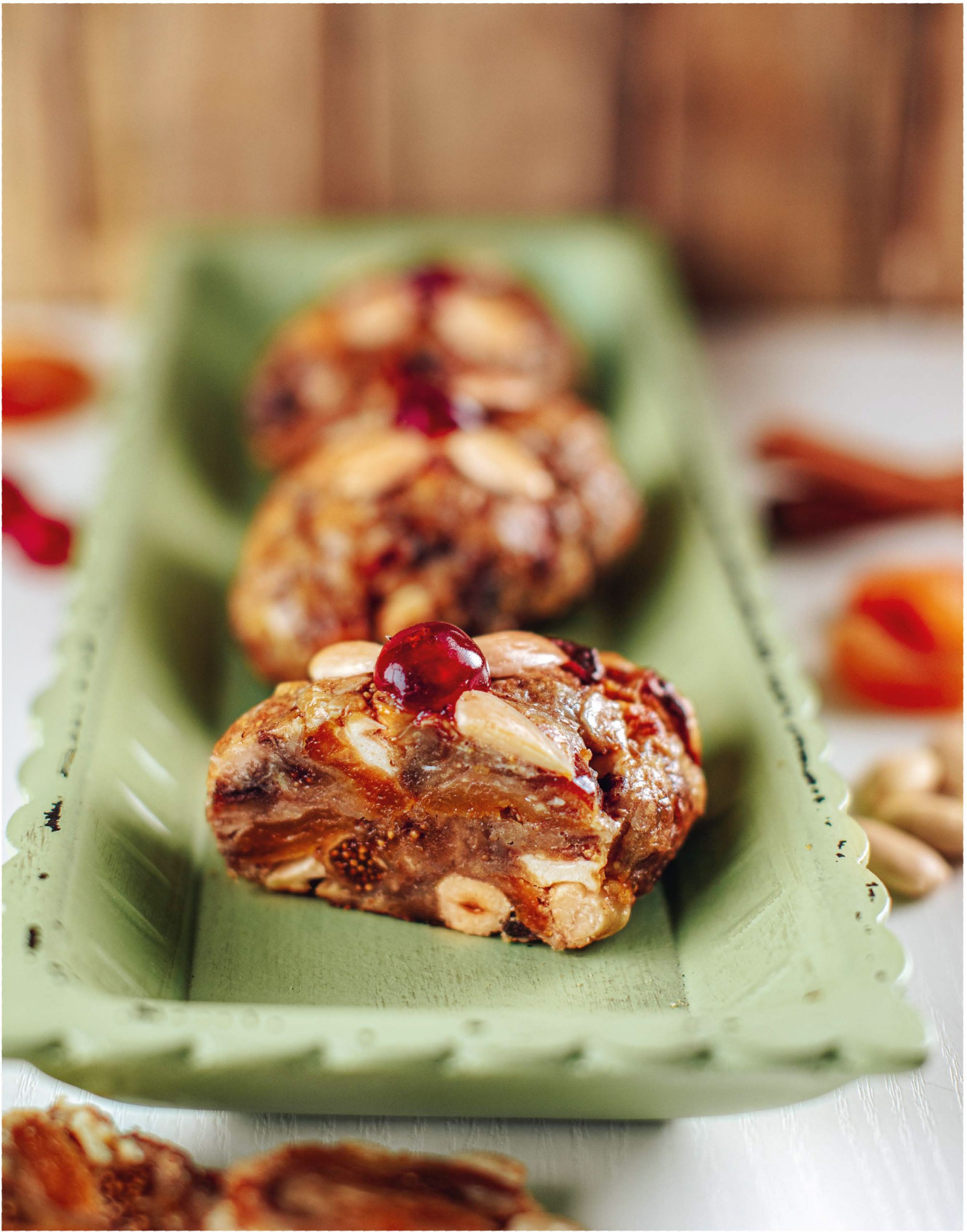 Am nächsten Tag die trockenen Zutaten mischen und zusammen mit den Früchten zu einem Teig kneten. Wichtig dabei: Nur kurz verkneten, damit die Früchte ihre Struktur erhalten.