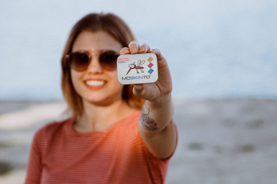 Kaum wird es wärmer, sind die Mücken da und mit ihnen lästige juckende Mückenstiche. Auf keinen Fall sollte man an den Stichen kratzen, denn so gelangen Keime in die Wunde, die sich entzünden können. Mit dem innovativen Moskinto Pflaster lassen sich Symptome wie Juckreiz und Schwellungen nach Insektenstichen ganz einfach ohne Medikamente behandeln. Das Pflaster wird auf den Stich geklebt und verursacht ein leichtes Anheben der ersten Hautschicht. Dadurch wird eine mechanische Wirkung erzielt, die den Juckreiz unterbindet, und die Schwellung lässt nach. Moskinto Pflaster sind 100% frei von Medikamenten und Wirkstoffen. Sie haben die Form eines Gitters, sind aus Polyester und Polyurethan hergestellt und mit einem hautfreundlichen und speziell entwickelten Acrylatkleber beschichtet. Moskinto Pflaster sind latexfrei, wasserfest und halten ca. 5-7 Tage auf der Haut. Danach fallen sie von selbst ab oder können abgezogen werden.
